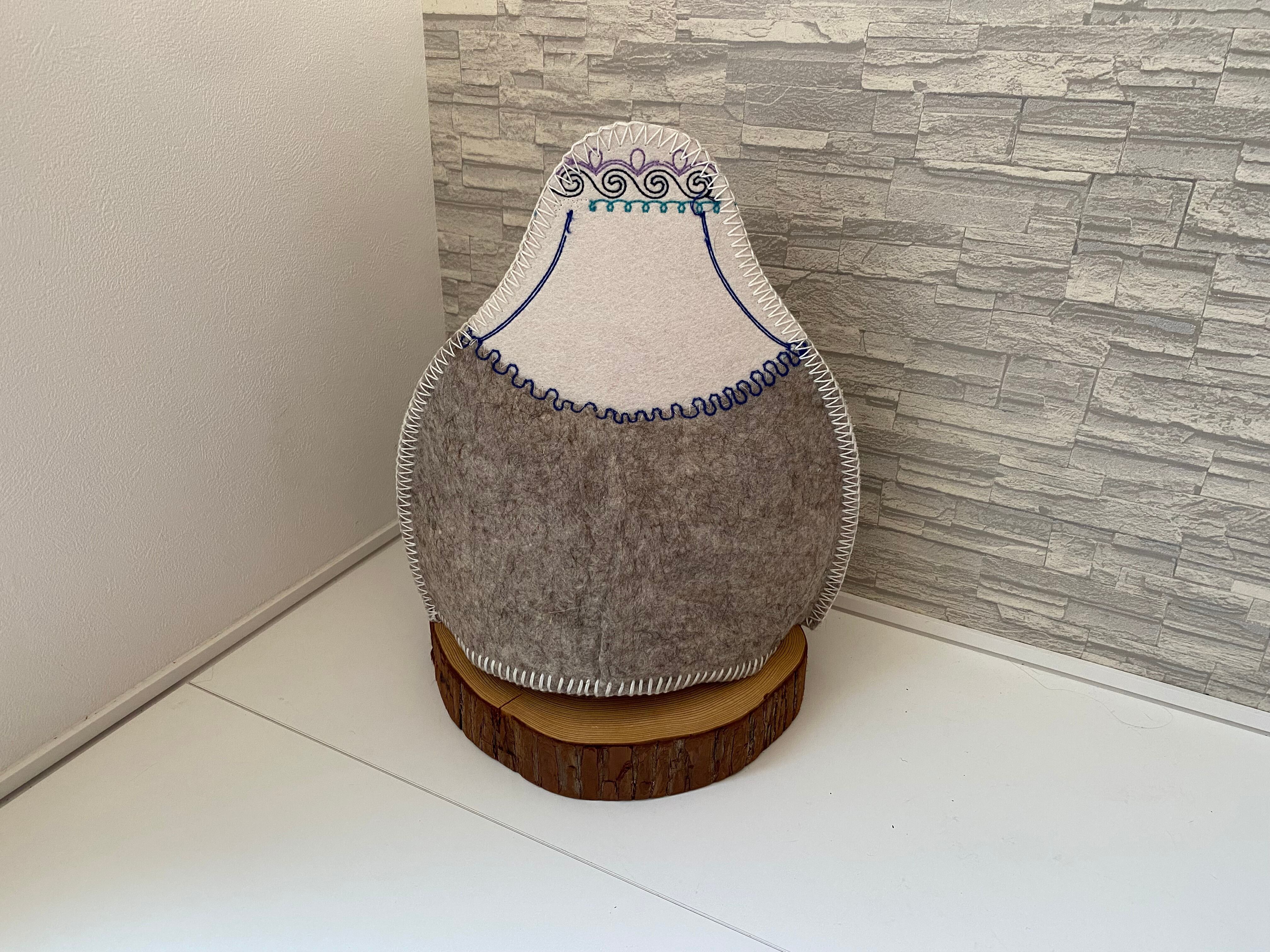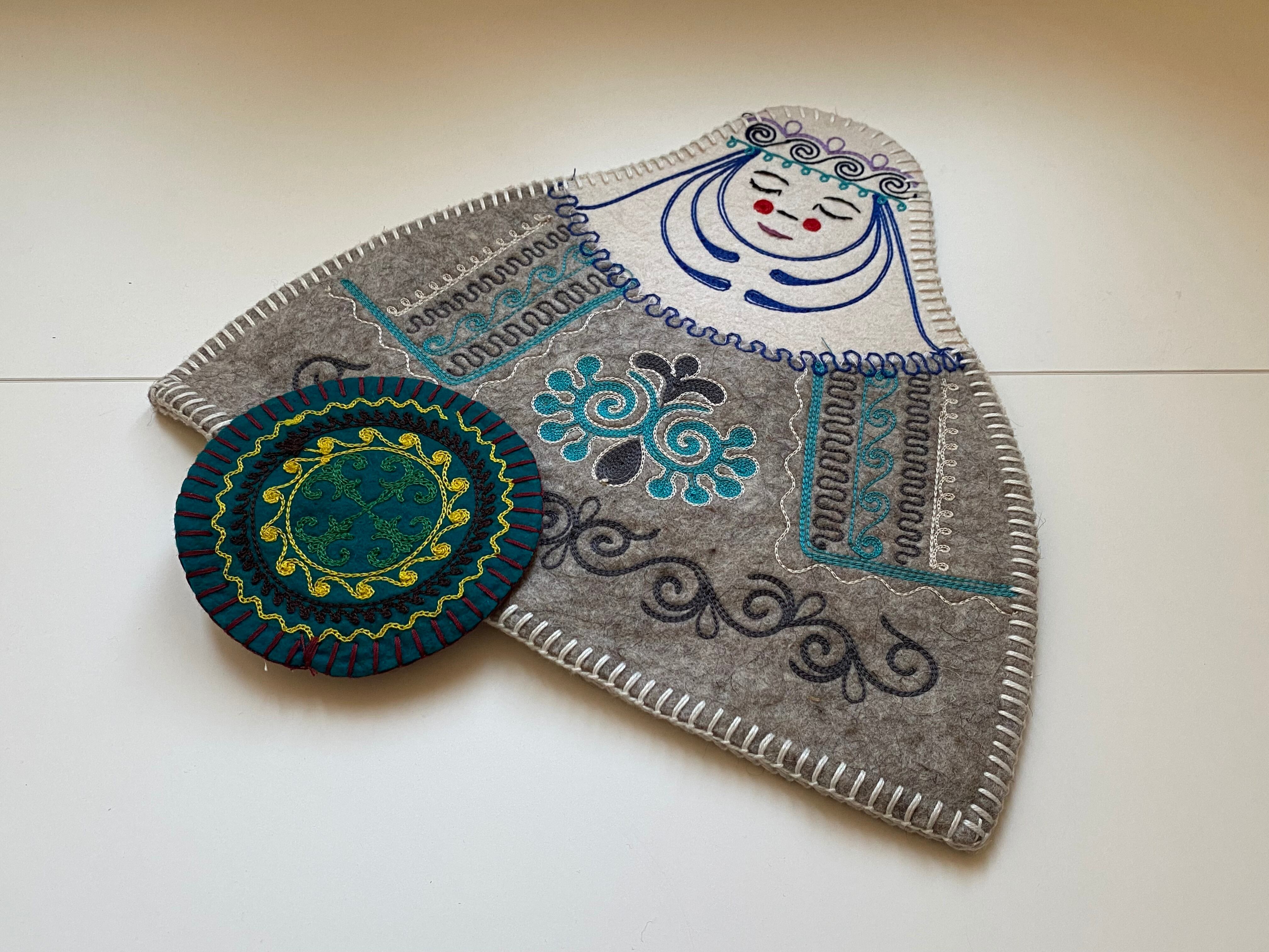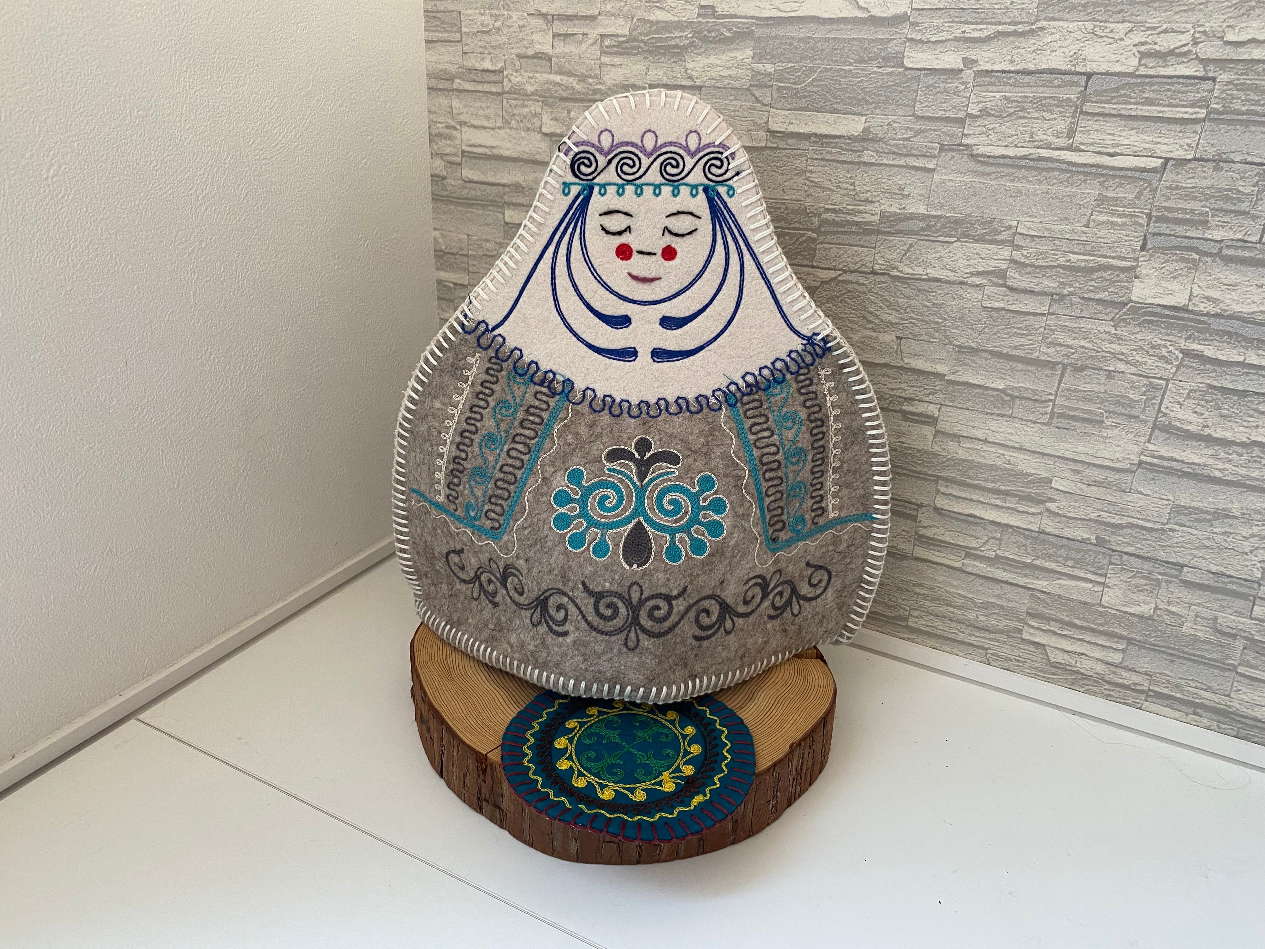 中央アジアにあるキルギス共和国の民族衣装を着た女性をモチーフにしたポットカバーです。