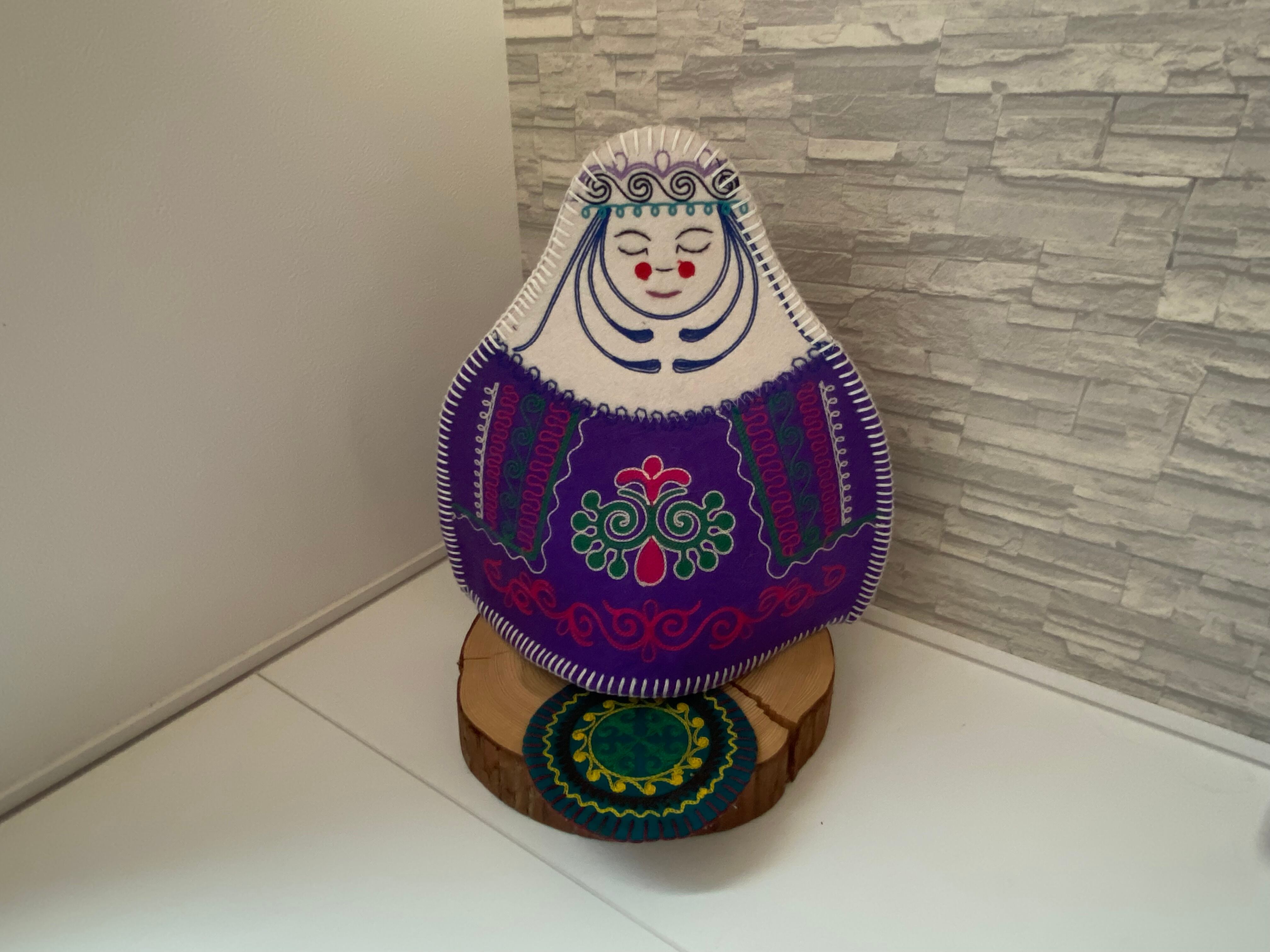 羊毛フェルトのポットカバー(民族衣装/紫)
