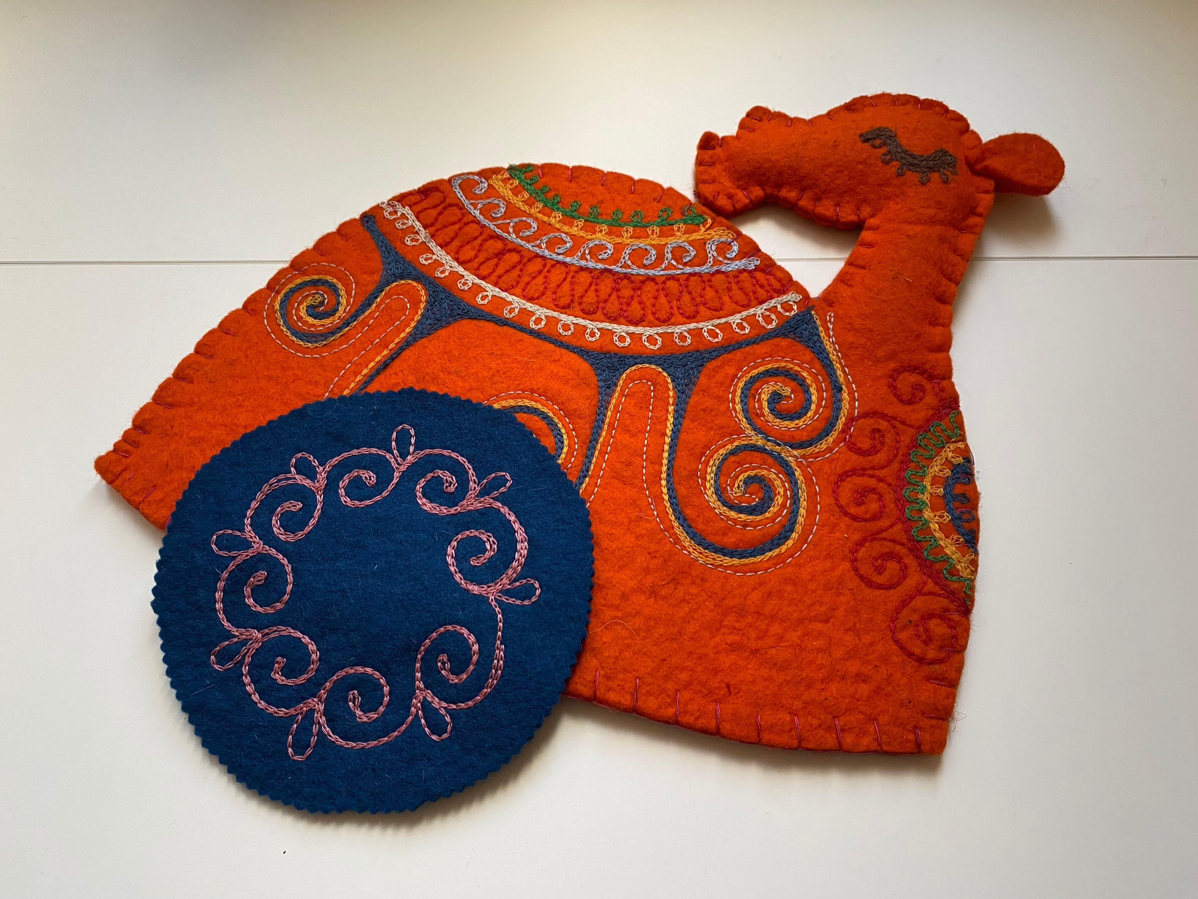 羊毛フェルトのポットカバー(らくだ/オレンジ)